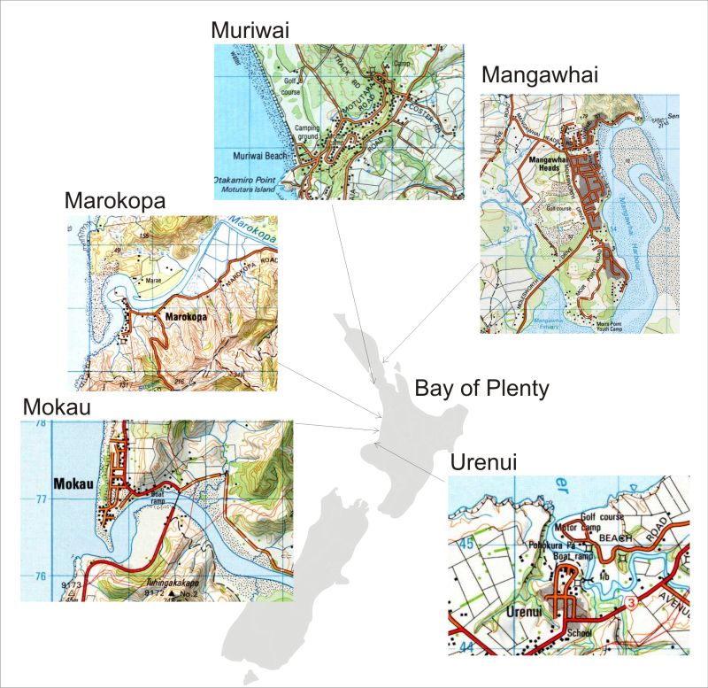 Six case studies (Urenui, Mokau, Marokopa, Muriwai, Mangawhai and Bay of Plenty) were selected based on three criteria. Firstly, the community had experienced a beach erosion event which threatened local values or property within recent memory. Secondly, there was a body of scientific knowledge about the behaviour of the beach system over time. Finally, a history of community action and past decisions was available though key informants and secondary data sources such as council records, technical reports and newspapers. Unstructured face to face interviews (Kitchin, 2000) were selected as the most appropriate way to collect information about the social context of the erosion events and the choice of mitigation measures. This research is exploratory but these case studies help to shed light on key factors shaping environmental outcomes based on participants’ experiences in making decisions to manage coastal erosion. Interviewees were selected to represent the array of stakeholders and interests involved in, or familiar with, negotiating the outcome at each site, and included participants from local government (four), technical specialists (three) and local communities (nine). Technical specialists and participants from local government were familiar with more than one of the case studies. Each participant was interviewed at their home or place of work. Interviews took between one and a half and four hours, and each interview was recorded and transcribed. This paper provides a succinct overview of each case study and then presents a synthesis of the key factors influencing the final environmental outcome. Although every effort has been made to avoid identifying interviewees, the circumstances and nature of the information provided may result in their identity being apparent to some. All those interviewed found this acceptable.